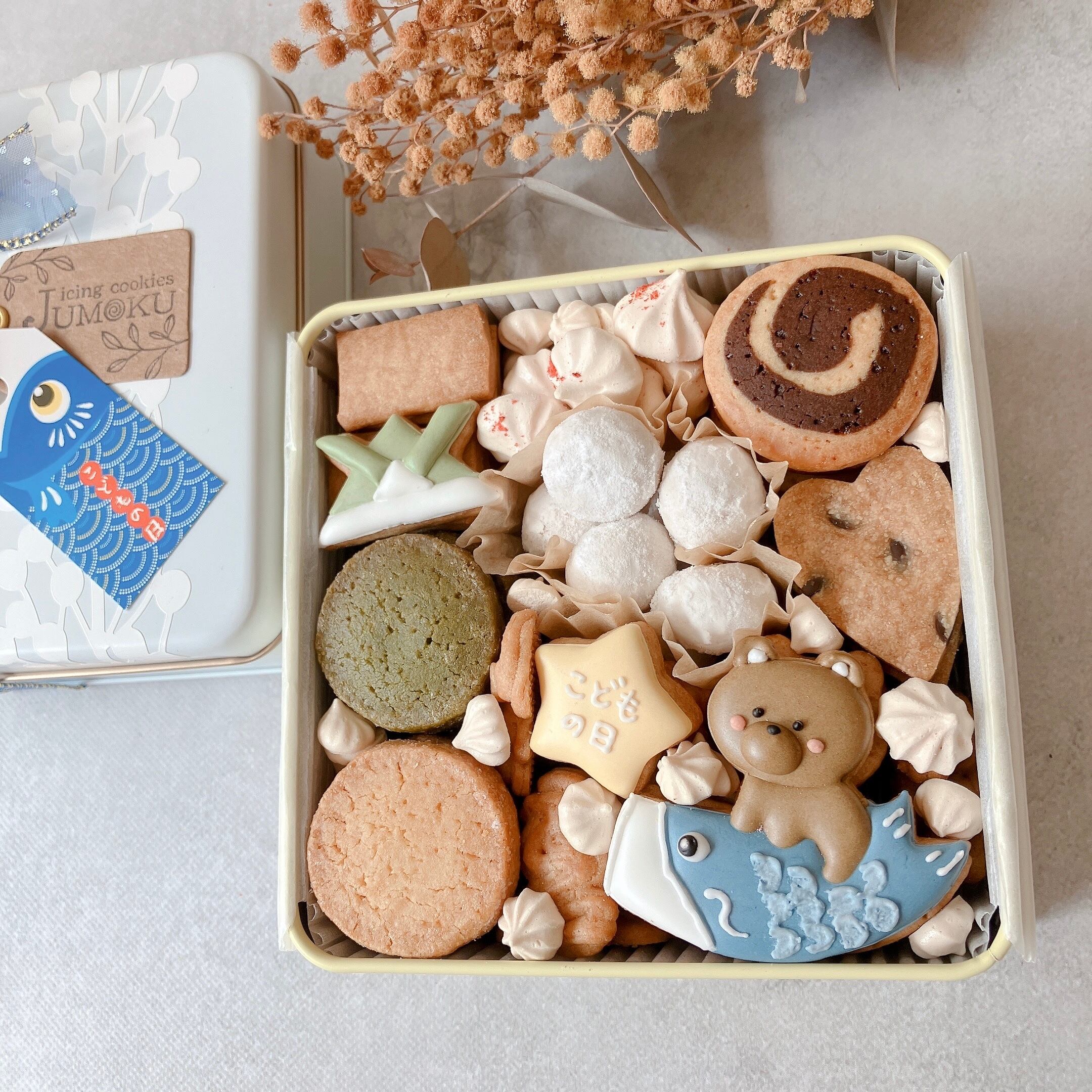 *クッキー缶の色は白、こどもの日のタグをおつけします。